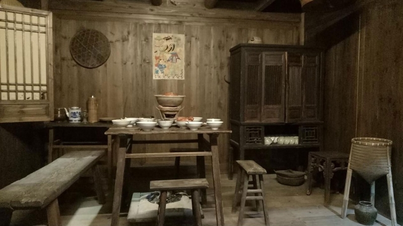 接着好像来到了畲族人民平时的生活区。这里每一区域都给我们展示了畲族人民的日常生活。有农家厨房、有农家餐桌、有农家店铺、有农家集市、有畲族在田间劳作的情景、也有畲族人民跳舞的情景。这一切都像是我真真实实的经历过一样,农业的饭桌上还炖着畲族的特色小火锅、摆着豆腐酿、山豆腐、乌饭等畲族传统的美食,它们似乎还冒着热气,等着我大快朵颐的样子。