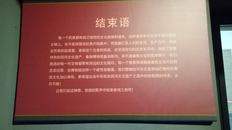 还有畲族唱山歌对歌的情景,虽然听不懂这回荡在博物馆里的歌声唱的是什么,但曲调之高,令人佩服,许是以前畲族人民所住的山上离的远,所以大家都是大嗓门吧。
