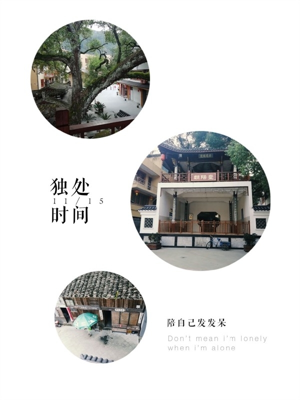 在古街里穿行,听着孩童的嬉笑打骂,大人们聊着家长里短。时光仿佛向后退了几步。走到一处,有颗大树,树的枝干很粗,被团团包围着,它的旁边便是光炳公墓,旁侧有楼梯可以上去二楼。这里便是朝阳殿。走上朝阳殿,往下望,这里的风景独好,旁边的椅子上因久无人落座而落了灰,有几片叶子飘飘荡荡的从树上落下来。起风了,天凉了。