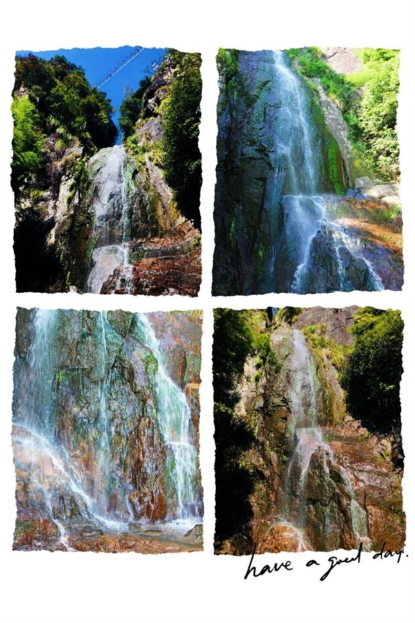 这里的瀑布也很是秀美,潺潺的流水顺着岩壁而下,如仙女飘逸的纱衣。两边石壁青苔斑驳,为这身纱衣重新装点了颜色,这件高级定制的仙衣,真是仙气满满了。