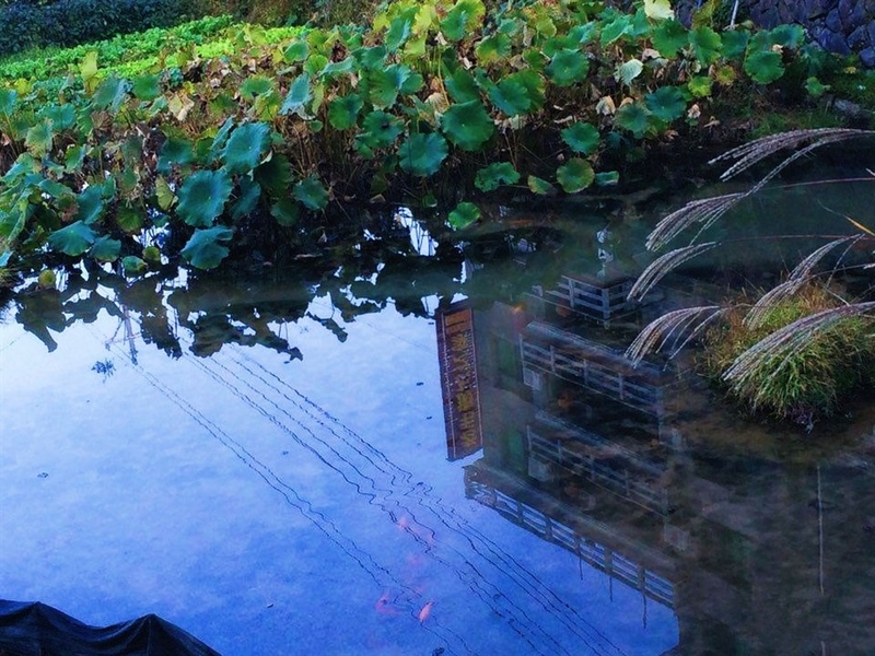 芦花飘荡,荷叶枯萎,池塘里的锦鲤许是因为天凉水冷,总是悠悠的在水里飘着,没了生机。慢慢的天色也暗淡下来,秋天已尽,俨然已是初冬的感觉,连太阳公公下山也变得早了起来。乡村的傍晚来的也似乎特别快,田野上老伯一手扛着农具,一手夹着一根烟头递到嘴前深深的吸了一口,然后吐出一片云雾,显得很是满足;菜地里的老妇,一手挎着竹篮,篮子里是满满的自家种的蔬菜,脚步匆匆,怕是急着赶回家给小孙孙做饭。老妇的身后跟着一条大黄狗,时而停下了打量着我这陌生之人,那双眸子在夕阳的照射下显得异常清澈。