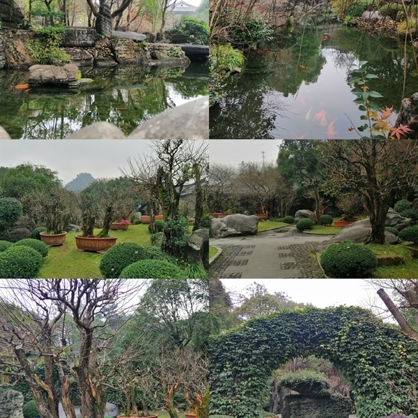 继续往里走,入眼的尽是亭台错落,绿碧小潭,林森茂密,误以为自己走到了某个后花园中。腊梅园栽种着无数的腊梅,可以想象等到梅花开放的季节,会是怎样极其灿烂浓烈的画面。