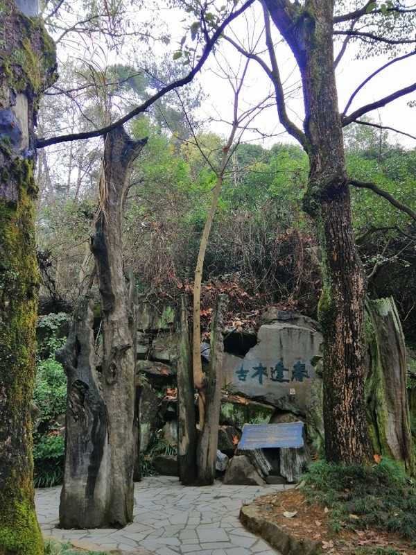 往前迈步,既走到“月下老人”跟前,友人还未有另一半,装模作样的上前拜上一拜,深深地被我嘲笑了一番。再往前走,就看到一棵枯树中冒出了一棵新树枝,中学时学过一首诗:“沉舟侧畔千帆过,病树前头万木春”,每每读到这句话心中就顿时有种豁然开朗的感觉,即使再困难的事情也能看见希望。