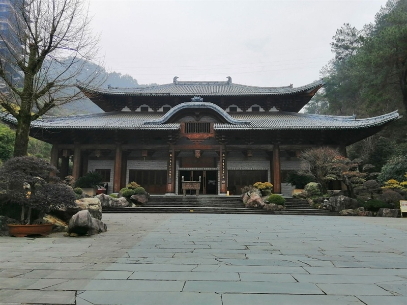 大雄宝殿的根雕释迦牟尼佛,重达40余吨,是目前世界上最大的根雕佛像。
