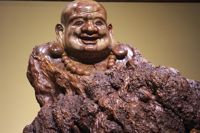 一进博物馆大门就能看到正中间放着的根雕作品,仔细看是无数个栩栩如生的罗汉端坐期间。不禁让人想到这么一件作品需要耗费多少心力,多少时间才能完成。此刻的我真正感受到了艺术家们在创作时会是多么的幸苦。