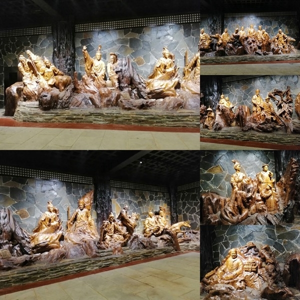 第二座大殿是“历史文化馆”,从盘古开天、三皇五帝开始至清代止,以推进历史进程中有着重要影响的帝王将相,历史事件为主题的大型根雕艺术作品,是一部根雕版的历史文化教科书。负一楼为历史事件为主题;一楼为开天辟地和六合归元为主题;二楼为义薄云天系列。
