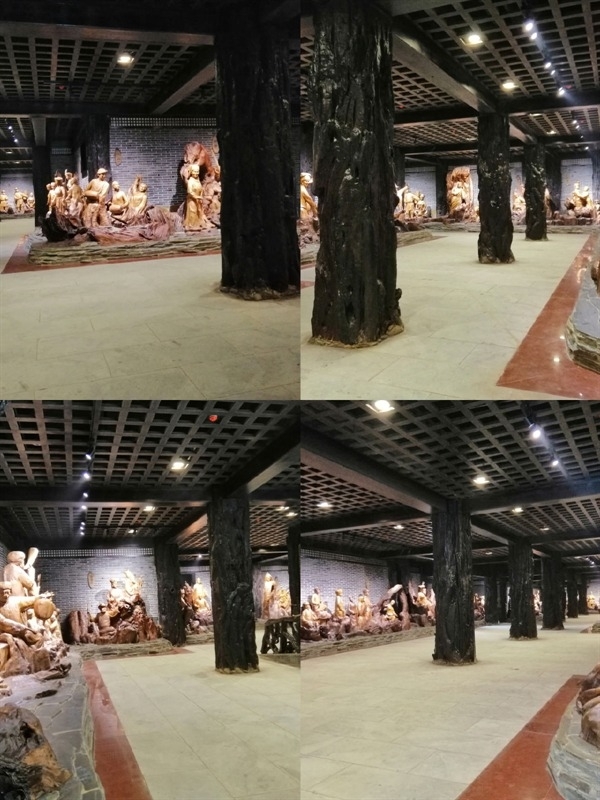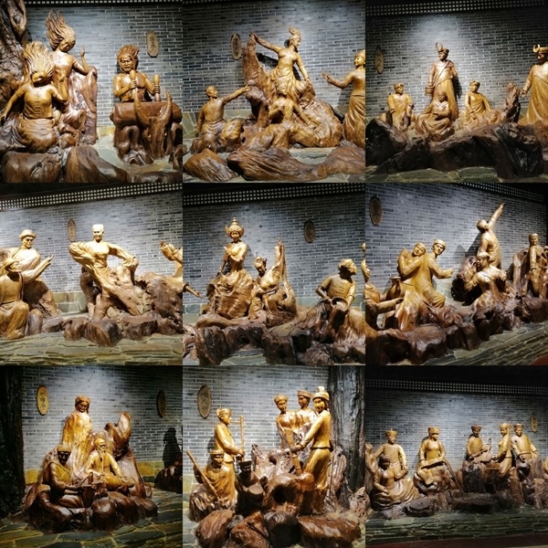 走过长长的阶梯,进入华夏文化根雕艺术博物馆,旁边正好有导游在解说“华夏文化根雕艺术博物馆,以上下五千年华夏文明为创作主题,是一部巨型、立体的历史文化教科书”。我与友人听此,迫不及待的开始了探索之旅。