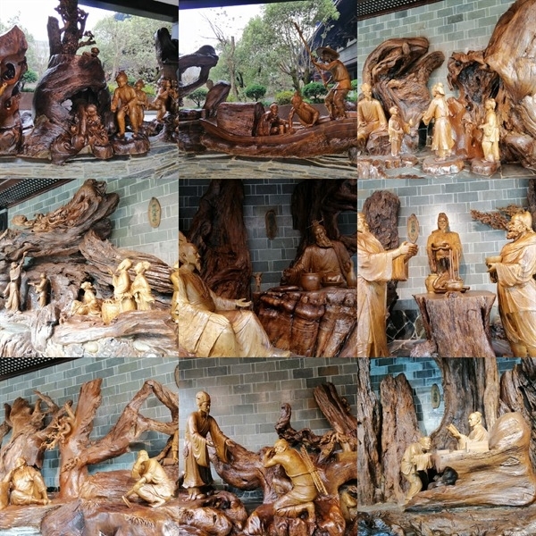来之前就知道此行的目标于此,也做了些许知识储备。对比根佛文化景区以“朝拜”为核心的旅游体验,华夏根文化景区通过对传统文化的传承、提炼、升华、创造性的将民艺与传统文化相融合,实现了创新性与传承性的统一,超越性和现实性的统一。用无数个根雕艺品重现耳熟能详的典故轶事。景观主要包括:醉景楼游客体验馆、华夏文化根雕艺术博物馆、神工天趣园、童趣园、历史文化长河、长寿宫、月老殿、易经馆、中华孝文化博物馆、财神殿、农耕文化体验馆、国际茶文化展示中心、道观、明清文化商业街、龙顶宝塔等。