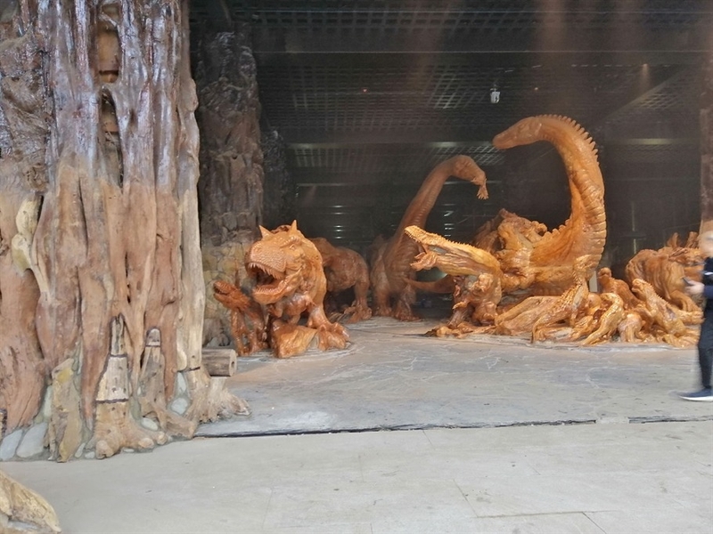 进入后才发现,试营业期间只开放了华夏文化根雕艺术博物馆等核心景观部分,其他部分预计2019年前后才会陆续开放。本担心不够看的,后发现担心是多余的,博物馆内的根雕艺品已让我们应接不暇。此外因正逢“醉根杯”中国根雕大赛,我们还能去创作大赛基地观看现场创作。能一睹中外艺术家同台竞技的风采,这是额外的收获。