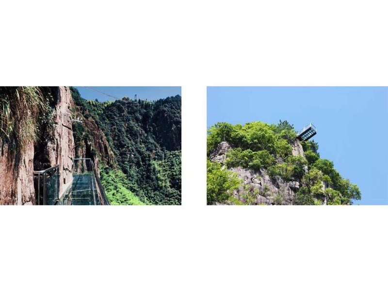 玻璃栈道,让人心神向往却又望而却步,我试探性地往前大胆迈开步子,带着好奇与紧张,都说过了栈道的都是有魄力的人,我也许不是一个怯弱的人吧,走上桥,脚下徐徐,步履强健,潇潇洒洒。彷佛走在太空中一般,往下望去,云彩环绕。厉害不已,沐浴着这山间风,好不惬意。回头望去,有些游客豪言壮语,确久久不敢下步,多得是诙谐,但又觉可爱不已。小时候学的望天门山,在此像是身临其境,两岸青山相对出,孤帆远影碧空尽。