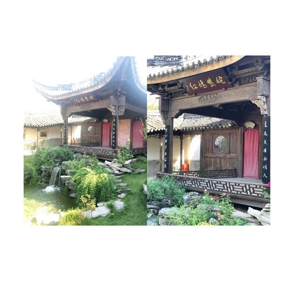 穿过几个门厅,便来到了后花园。之所以叫它后花园,满地种着各色鲜花,我虽说不出品种,但空气中弥漫着阵阵幽香,园中心的潭,各色鱼在自由游动。戏台就静静伫立在潭后方,水声哗哗为它增添了一份市井气息。阳光洒遍整个园内,竹林花朵为其增加色彩,好不艳丽。