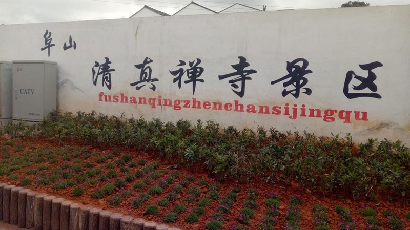 经过一个小时多的颠簸,终于到了阜山,一切都开始热闹起来,原本以为这样偏僻的地方应该会是廖无人烟的吧!一下车就看见巨大的广告牌“清真禅寺景区”几个字,没想到走几步就到了这个大山深处的禅寺。