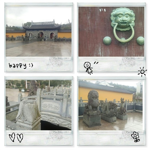 再看就到了寺院门口,这大门是新修葺的,青色的瓦,紫红色的三个大门,黄色的围墙,门口有三座石雕拱桥,拱桥两侧放着石狮子、石龙等神兽,显得格外庄严肃穆。