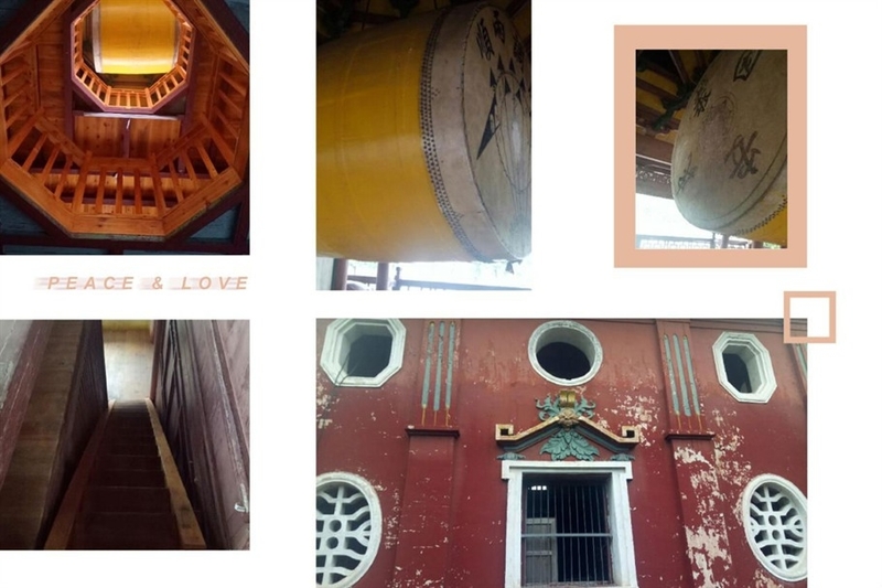 鼓楼的配置跟钟楼也大致相同,唯一区别可能就是鼓楼里边挂着的是个黄色的大鼓,鼓声也是沉闷闷的,像是位讲故事的老人。两座楼的中间都有一个天井,在一楼就能从天井上看到三楼挂着的钟或者鼓。