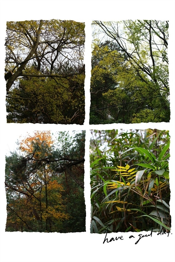 秋天的色彩在绿色的山林中总是特别耀眼,这里一片黄灿灿,那里一片红彤彤,还有一片成橙黄的渐变色,把冬日的山林装点的热烈起来。