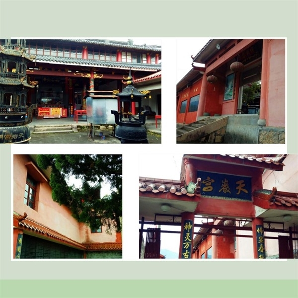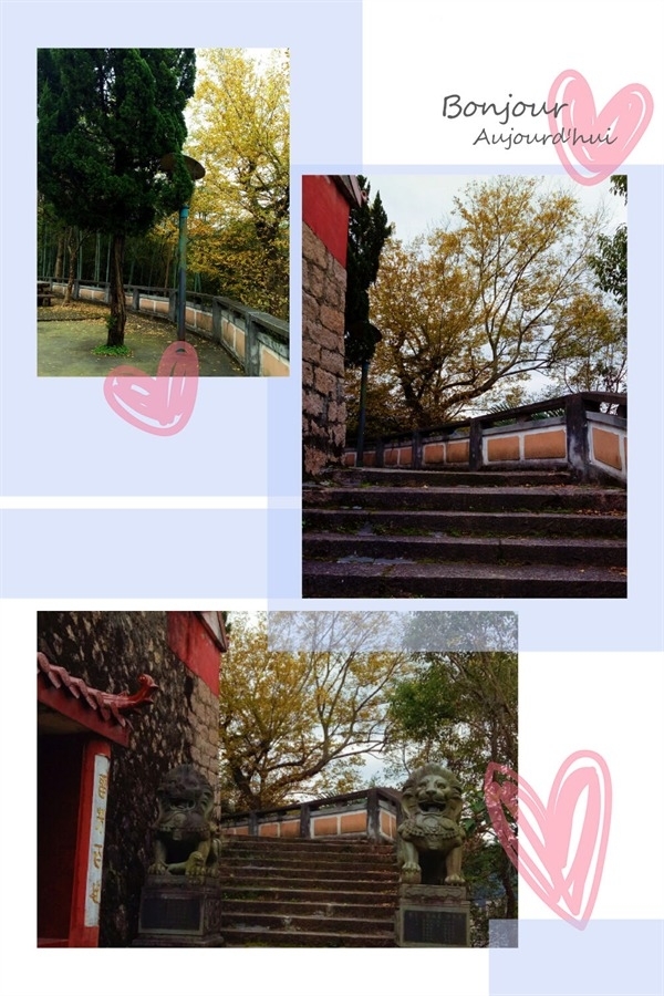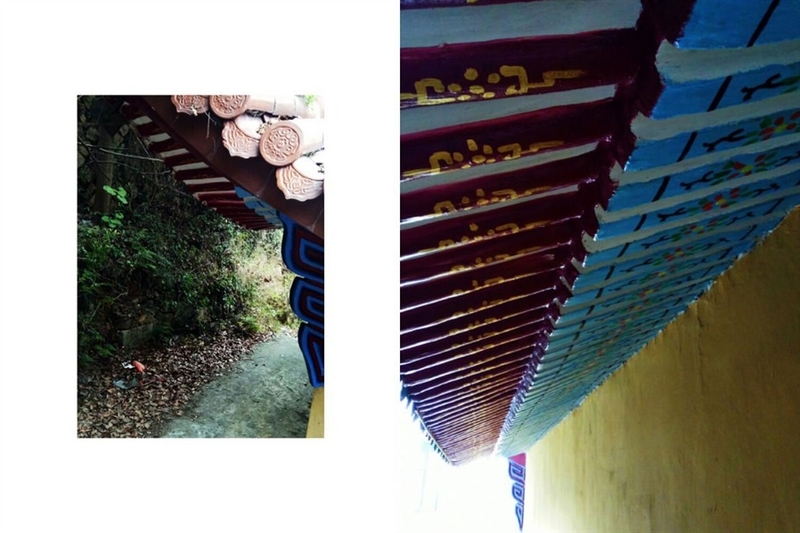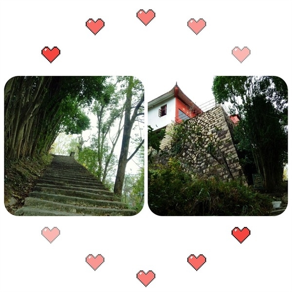 不知不觉便到了最后一段台阶,台阶一边的珊瑚树站成整整齐齐的一列,似乎在欢迎我的到来,抬头望去已经看见天岩宫的红色墙体,以及翘起的飞檐。