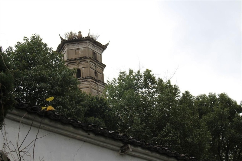 石塔呈六边形,一共有七层,每一层都有小窗子,中间看似中空的样子,但应该是用来登塔用的,今天石塔周围在重新修葺施工,因此也没有近距离的观看石塔了。