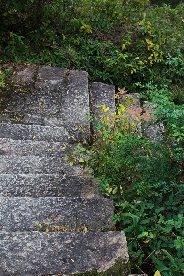 从山的另一边下山,这里也是一级一级的石阶,石阶弯弯曲曲通往山下。