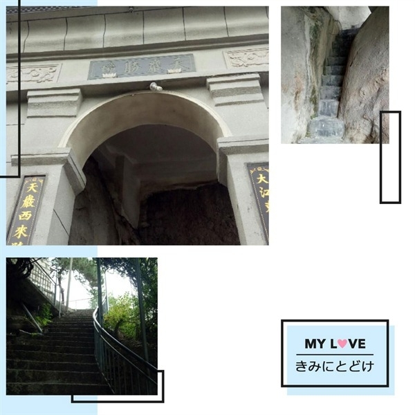 再往下就到了这边的山门出口,这里还有一条小道,在石头间穿梭往上,就到了上边的观景亭子那里,让人称奇。