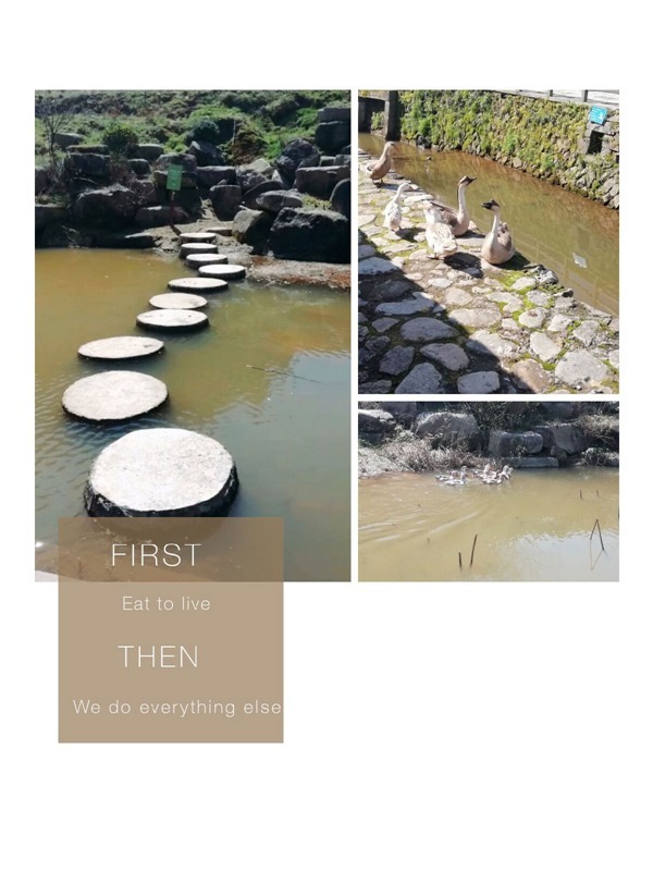 朝阳从东边升起,照亮了半边天。温暖的微光下,有几分清冷。远处屋舍俨然,屋前良田百亩。放眼望去,一片嫩草绿地,夹杂着初春的喜悦和新生,天很蓝,泛着点白,看草鸭在田里嬉戏,多么惬意的时光。