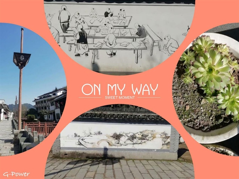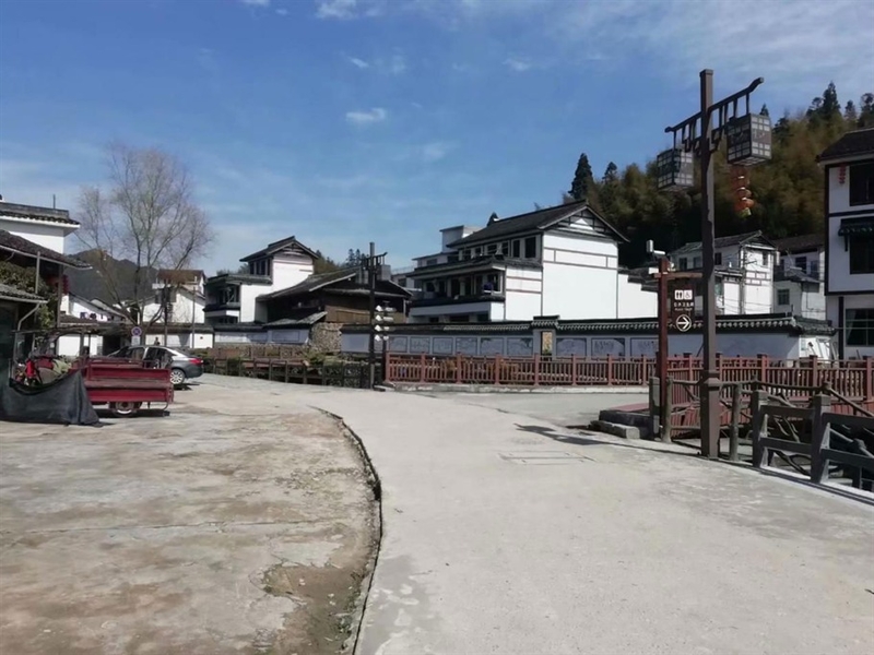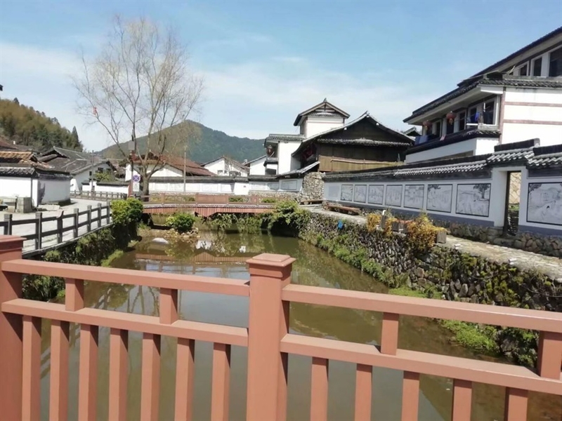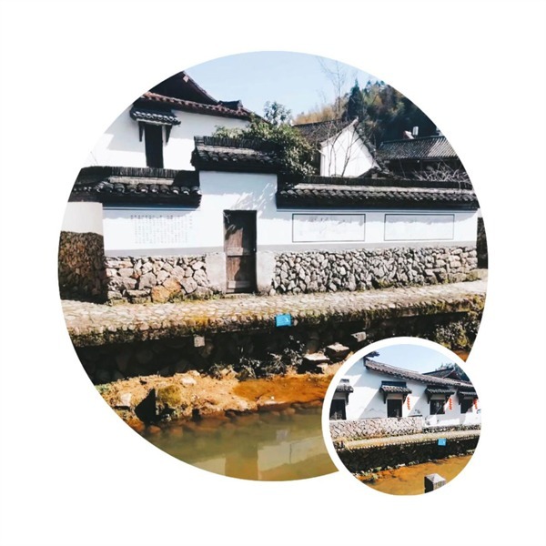沿溪而建的屋舍,门口石块堆叠而成的低矮围墙,白色的墙面上是一幅幅彩色的画作,记录着大漈的青山秀水,历史故事。屋舍之中,有几处老屋,古旧的隔窗,落漆的木门,古老的牌坊,都透着深深的年代感。
