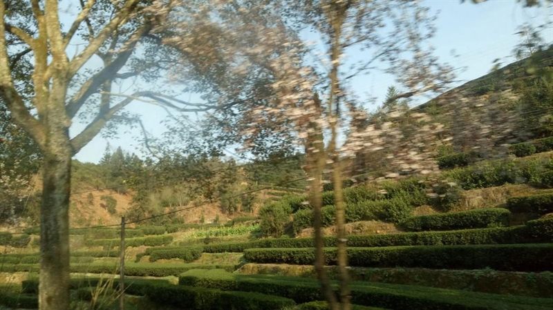 汽车开始发动行驶出城外,车窗玻璃就像是一副会动的画,时而是热闹的乡间集市,时而是清净小山村,时而是茶园连绵,时而是翠竹连天。