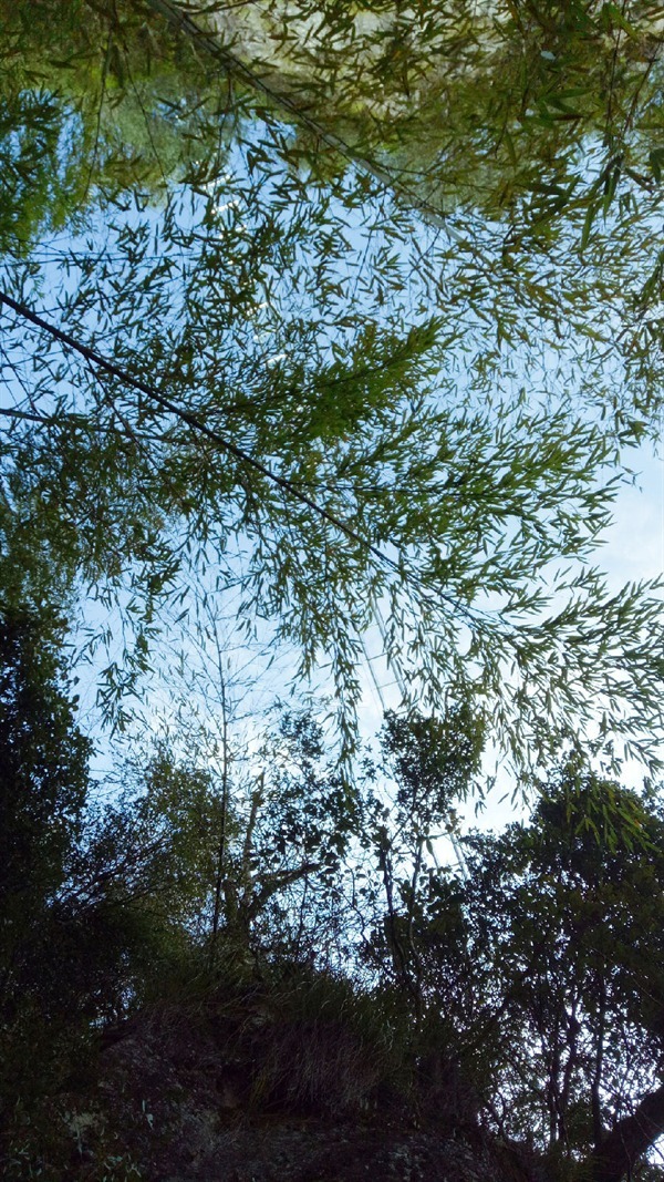 接着再继续往前走,整个人就全部置身于竹林里面了。竹子一节一节往上长,竹杆修直挺拔,直冲云霄,一节复一节,千枝攒万叶。抬头看,那翠绿的竹叶犹如一顶碧绿色的华盖,遮住了太阳,与蓝天合为一体。