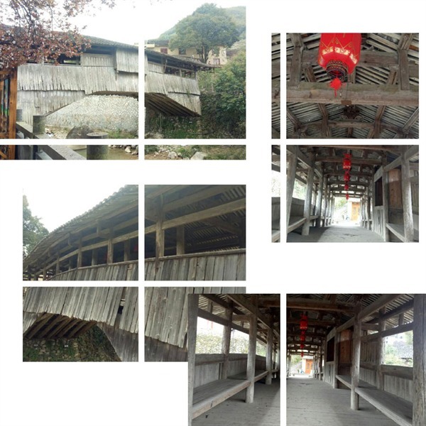 然后遇到的是一座风雨桥,这桥的年代感更足,连桥面铺的木板都已经被磨的很薄了,有些木板间的缝隙都已经变得很大了,能看见这桥下的溪水潺潺流过。