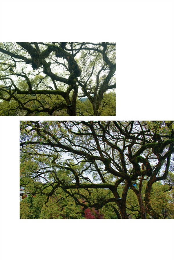 古樟树的枝条就像是一只巨大的八爪鱼,无数的触手张牙舞爪的伸向天空。嫩绿的树叶集中在树冠的顶端,使得樟树的树冠就像是溪边升起的一个泛着荧光绿的蘑菇云。