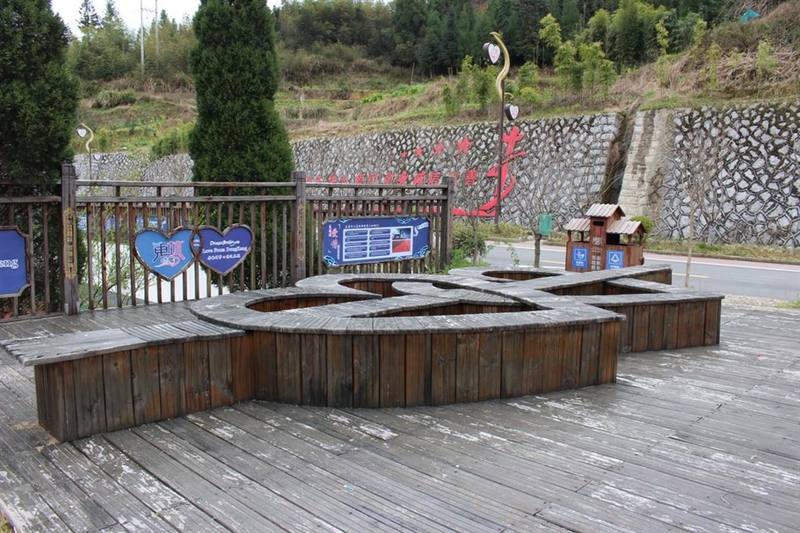 溪边供人休息的凳子做成了一箭穿两心的造型,连一边的栏杆上都是爱心的形状,这里的一些小小细节无一不透露出一股子爱意。