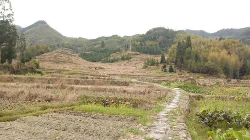 过了门看见广阔的梯田,现在这个时候正是农闲的时候,梯田里几乎还没有种太多的作物。