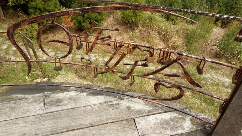平台的栏杆都是百年好合这样子的祝福标语,上面还挂着许多用来许愿的爱心锁。