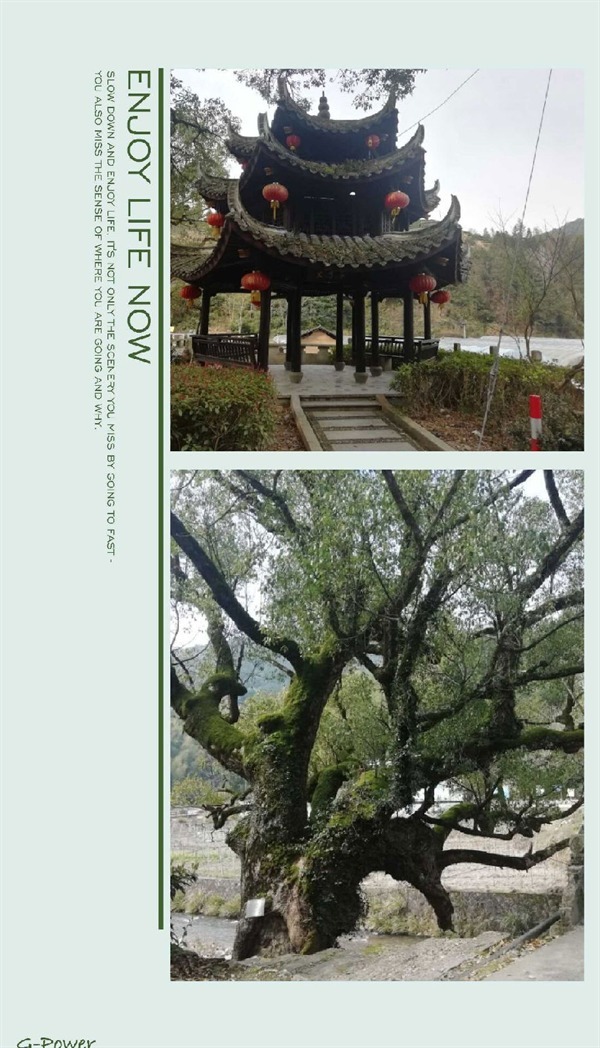 亭子旁侧有座石桥连接着对岸,我被石桥一旁的苦储吸引了视线,整个树根庞大,像硬生生的砌在了土地上,树身被绿色的苔藓植物所占领,枝叶众多,向四面八方伸展开来,不想这颗大树竟已历时500年之久。有人告诉我,走过这座桥,行走2.5公里便是根底岘村。我对2.5公里的路没有概念,只知道地图上我的位置跟它的位置拉开了好长的一段距离。犹豫之下,我还是决定徒步寻找它的踪迹。