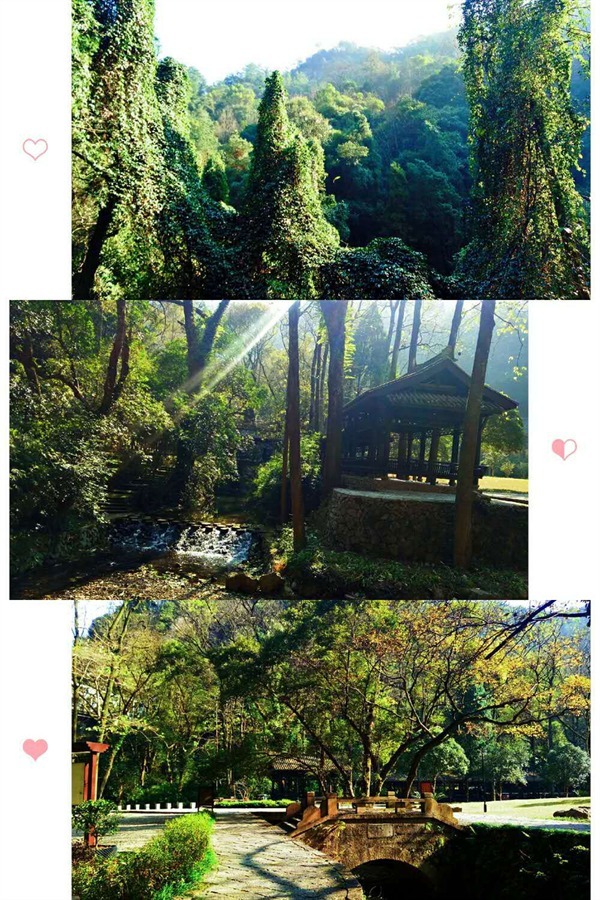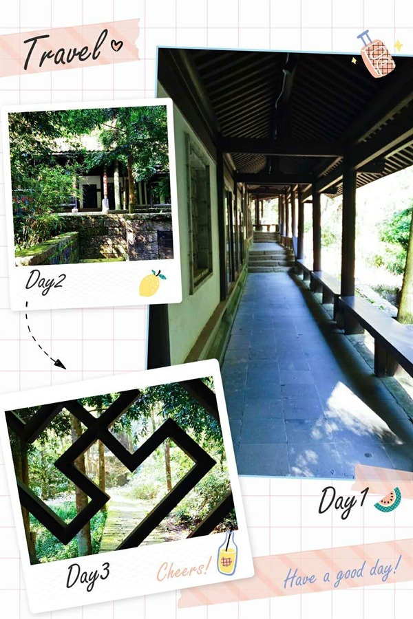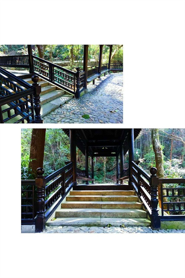 走在长长的亭廊上,一手轻轻拂过斑驳的墙面,再透过那镂空的万字文木窗看那林下的小径,一种清幽之感慢慢扩散开来。