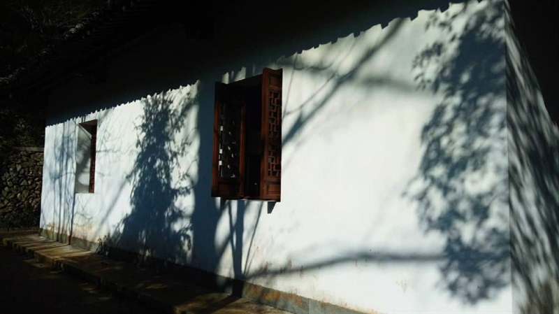 夕阳下斑驳的青砖墙上留着树的身影,古人常说“疏影横斜,暗香浮动”,此时,没有暗香只有山间的虫儿在黄昏里聒噪。