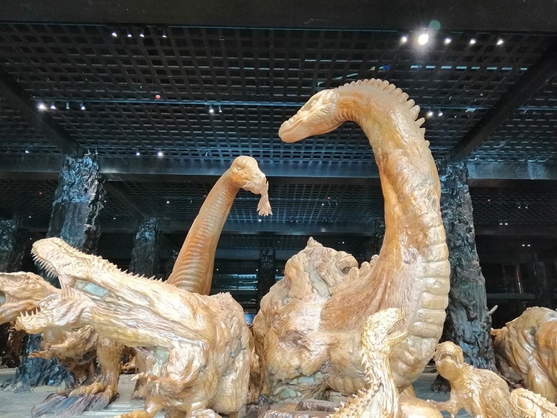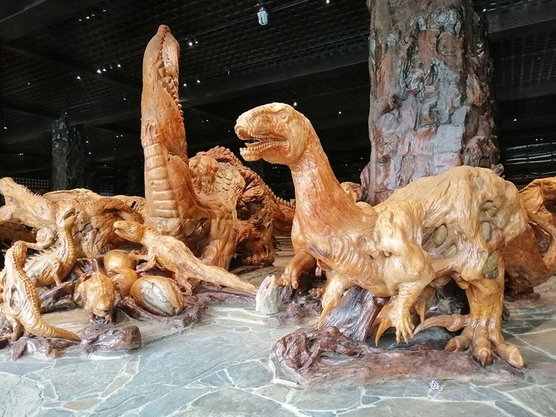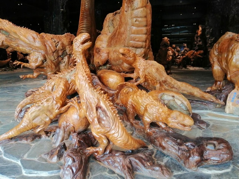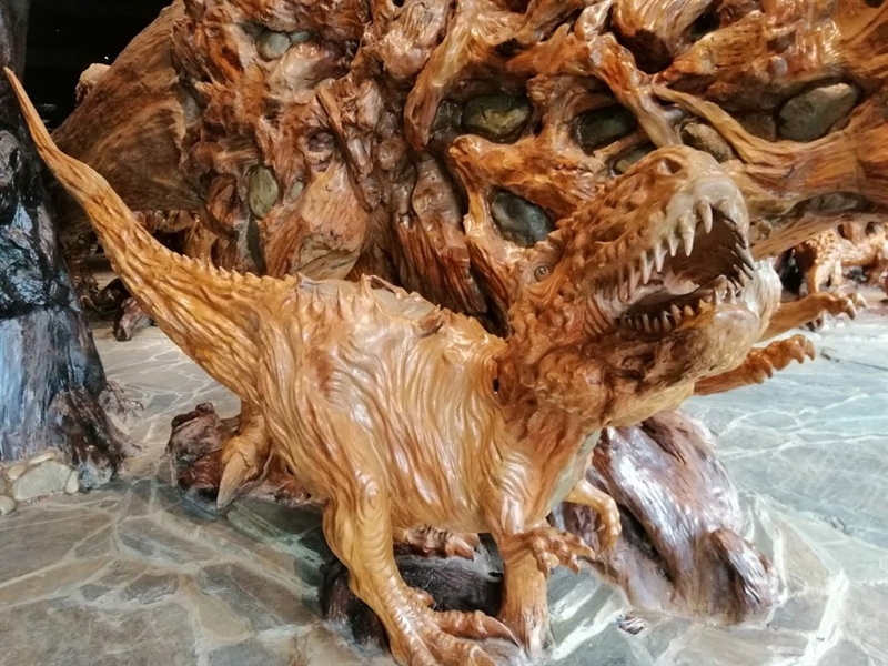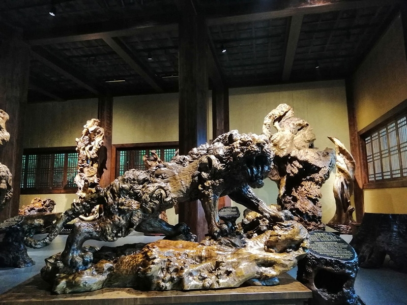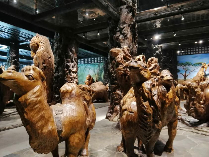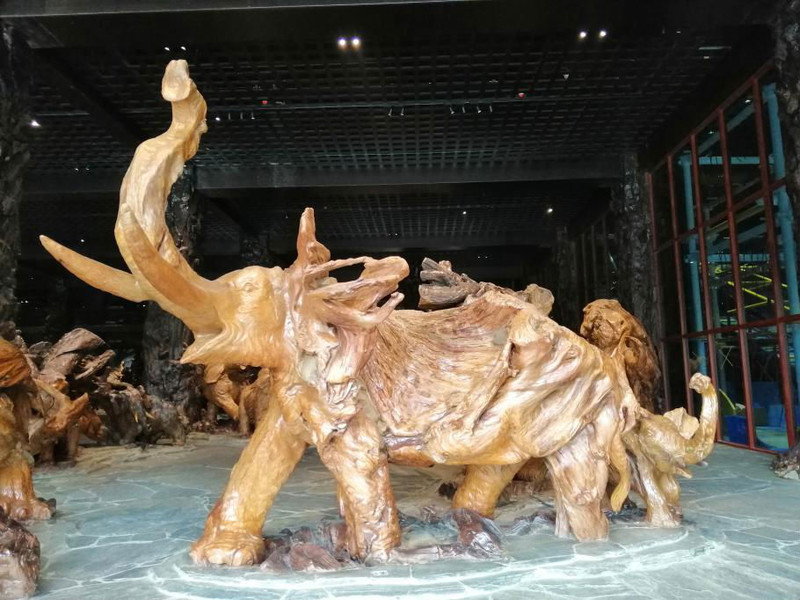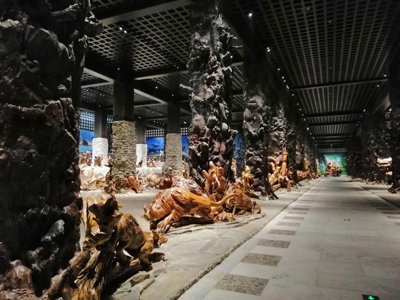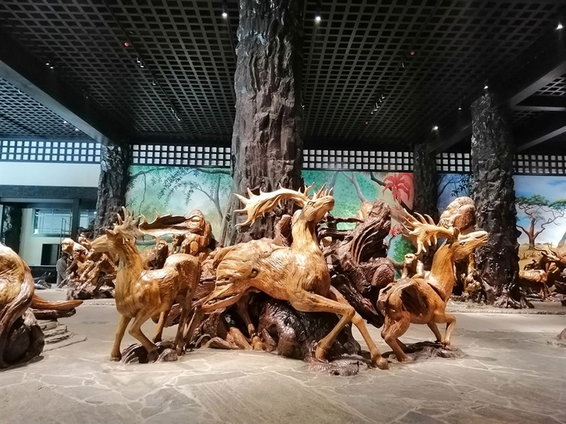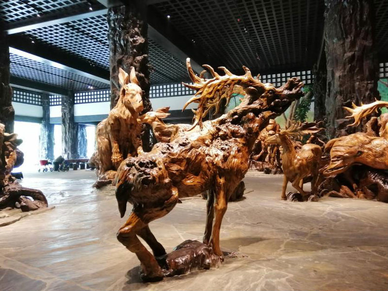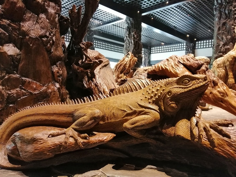 靠近看,穿山甲和蜥蜴身上的每一片鳞片都清晰可见,每个动物都雕刻地栩栩如生,似乎只差一“画龙点睛”之人。穿梭在各样根雕制作的动物之间,去感受大自然的神奇之处,也一并感叹着手艺人的精巧手艺,如此之多的根雕要花费多少的人力物力,花费多少的心血去创造。