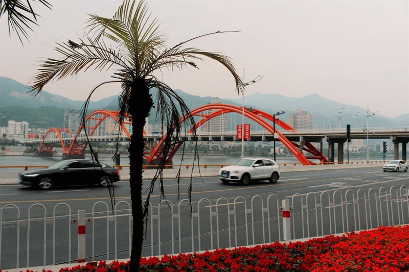 动车站外有一个华侨广场,广场一边竖立着各国的国旗,国旗在微风中不停的飘动,这也体现着青田这个华侨之乡的特殊身份。