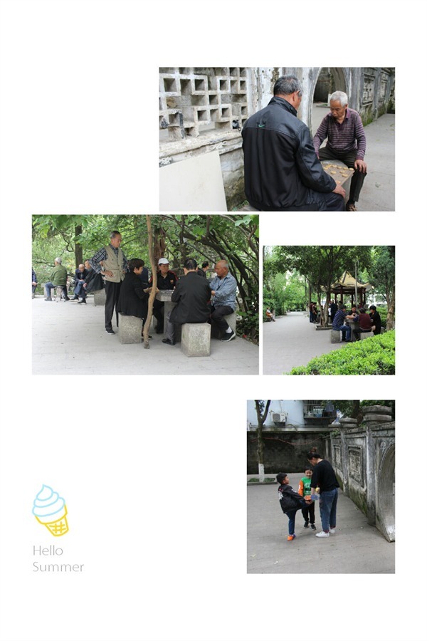有的人在树荫下打着牌,有的人在墙角的“楚河”两旁激动的厮杀,有的喝着茶吃着果子聊着乐事,一旁的小孩还在玩着传统的小游戏。我想他们这样安居乐业的在烈士脚下悠闲的生活,才是那些烈士们所希望看到的吧!