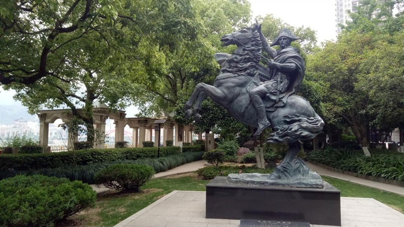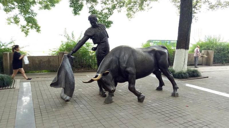 西班牙斗牛士的雕塑,估计是合照的人太多,牛角都被摸出了铜像原本的颜色。