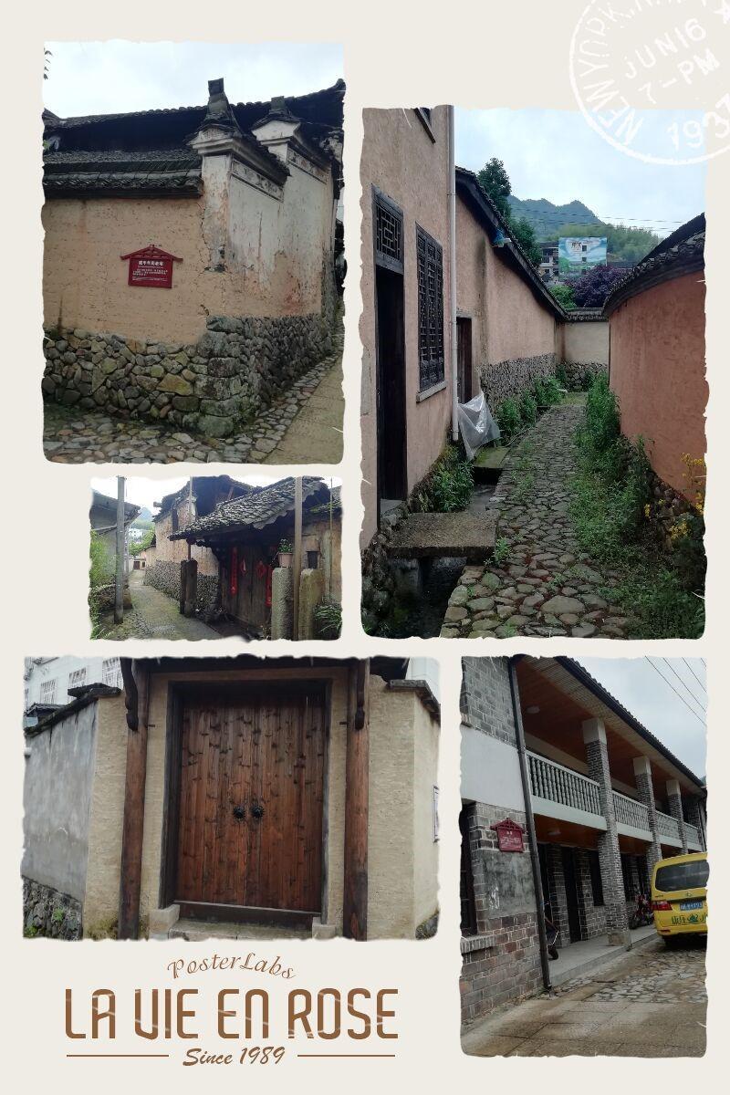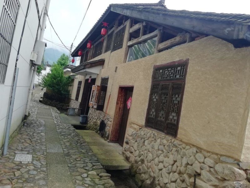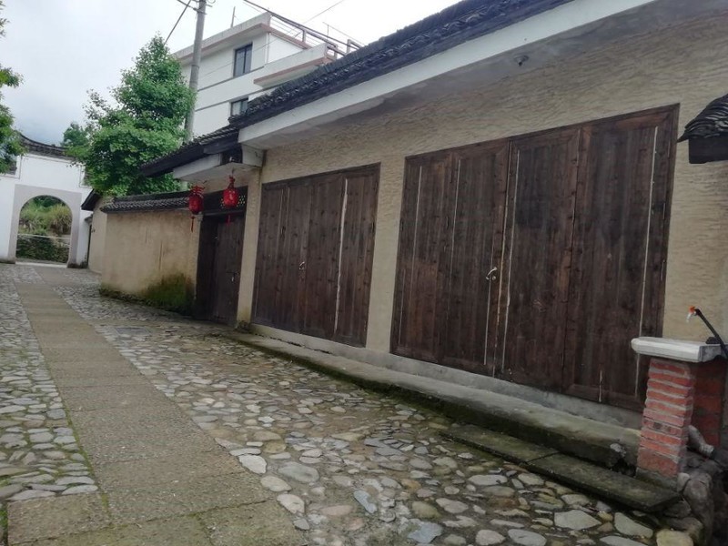 走在路上,却突然下起了蒙蒙细雨,让我来了个措手不及。不知不觉竟然有些饿了,去小卖部里买了些吃的撑着雨伞在细细密密的雨中走着。沿途上都是老式的房子,途径一个老旧的碾米房。红色砖块跟灰色青砖混搭在一起,因为历史弥久在砖的表形成了小小的坑坑洼洼。柱子之上隐约可见的是用黄色漆成的几个大字,后面的字已经看不清了。古老的碾米房曾经是油盐酱醋的重要作坊,刚加工好的稻米从这里发出阵阵清香,是最淳朴的乡村记忆。街道之中随处可见的旧房子,穿插着几处新居。老房子前的木门已经因为岁月弥久而变得暗沉,有一部分已经褪去了颜色,这像极了90年代的民居,往窗里望了一眼,那些家具也极具那个年代的特点,老式桌椅板凳茶几,都是满满的回忆。