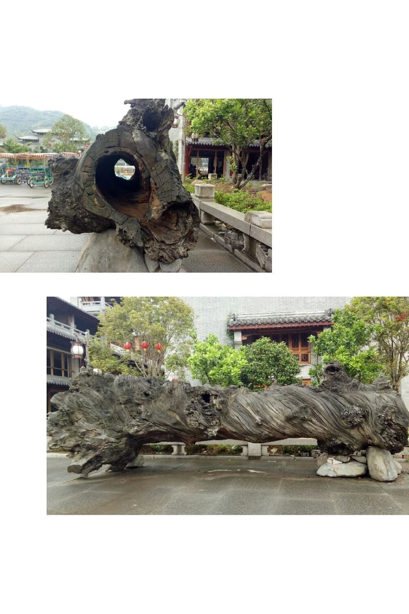 古街的镜头有一个小型广场,远远就被一根枯木吸引住了眼球。枯木整体呈灰色,枯木的表面纹路就像是翻腾的水浪,若隐若现看见好似有一条龙在里面打闹。枯木的中心已经被岁月掏空,可以从这头看到那头的风景。不知道历经多少年风雨洗礼的枯木,此时像是一位气息奄奄的老朽,在最后书写着自己的一生。