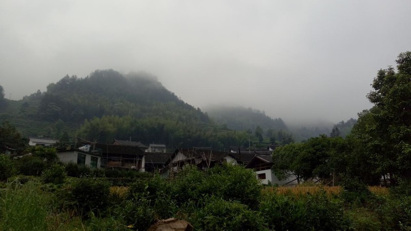 寨子在半山腰上,此时天空飘起了细雨,使得这烟雨畲乡的雾气更大了,大部分山峦都笼罩在烟雨之中。此时的周湖古寨,也有一半的村落被烟雨笼罩着。