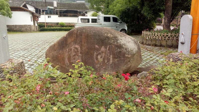寨子口有一小块停车场旁边的一块大岩石上刻着“周湖”两字。