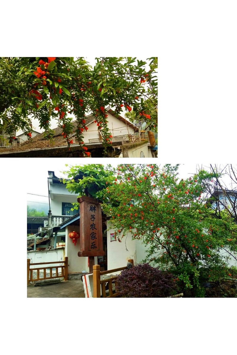 5月正式石榴花开的季节,寨子里的石榴树上开满了密密麻麻的鲜红色小花,很是喜庆。在石榴花的装点下,寨子里的农家乐就更有家的味道了。风雨中,地上落满了开谢了的石榴花瓣,想起文征明的那首诗句“庭下石榴花乱吐,满地绿荫亭午。”这预示着春天已经过去了,炎热的夏天就要来临了。