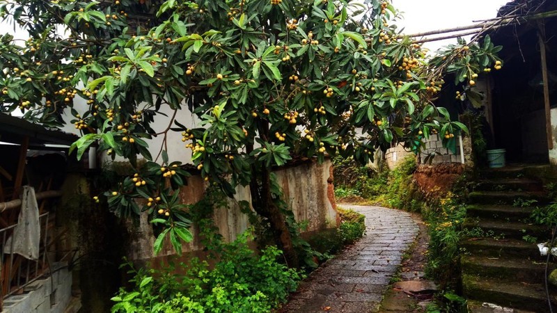 旁边一条小巷子里,远远看见一棵碧绿的大树上挂满了黄灿灿的果子,沿着布满青苔的石板路走进一看,发现原来是枇杷熟了。突然想起老家屋后的那颗枇杷树,小时候总是每天盼望着它快点成熟,然后只要发现微微发黄的枇杷就赶紧偷偷摘下,扒了皮就往嘴里塞,结果就是一嘴巴的酸汁,酸涩到五官变形。还记得那时候的枇杷虽然很酸,但是心里是甜滋滋的,美极了,因为每天都对树上的枇杷有特殊的期待。现在已经离家多年,再也尝不到那种刚从树上摘下就放到嘴里的味道了。也时常在水果店里卖过枇杷,但是都不是当初的那个味道了,然后对枇杷这种水果就了无兴趣起来。