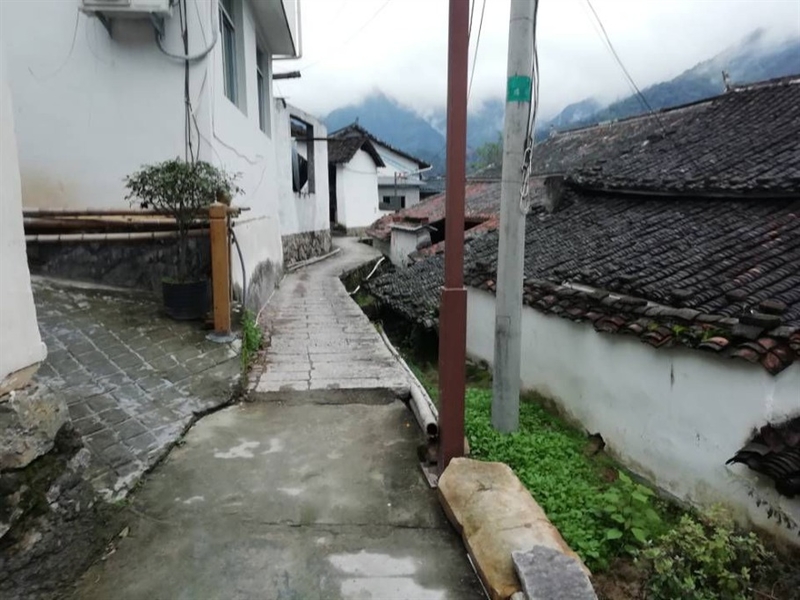 家家户户墙壁上是一幅幅简单的墨画,记录着勤劳人民辛苦劳作的场景。有些院门前的墙壁已经被岁月侵蚀的千疮百孔。墙皮脱落,白色的墙变的乌黑,潮湿的墙面上长满青苔。院门前的地上也因潮湿而发绿。