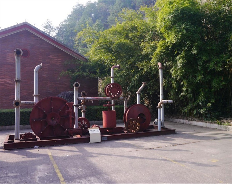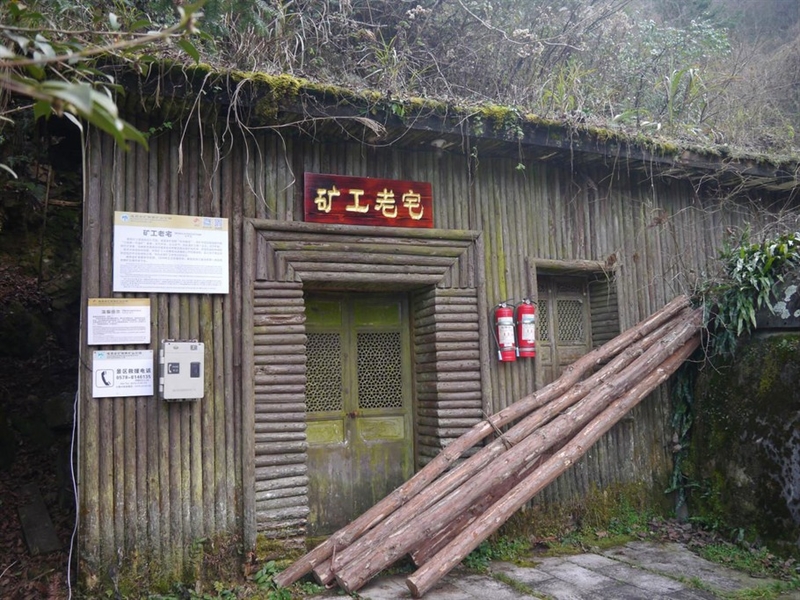 吊桥下的山谷里,是明代金矿的入口,这里还有一供游人体验淘金的淘金水池,这里同时也是景区乘坐小矿车的入口。说起明代金矿,就一定要提时任遂昌县令的汤显祖了,当年他在朝廷委派的矿使太监的逼迫下,组织开采金矿。他不满朝廷矿政的暴虐,作《感事》诗云“中涓凿空山河尽,圣主求金日夜劳。赖是年来稀骏骨,黄金应与筑台高。”之后他便辞官回乡,一年后这里便发生了矿难,古代的开采就此结束。