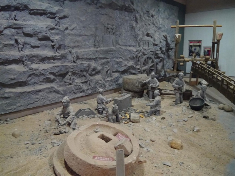 博物馆里还有一些还原古时候人们采矿的情景雕塑,可以说古时候人们的采矿条件真可谓是极其艰苦啊。