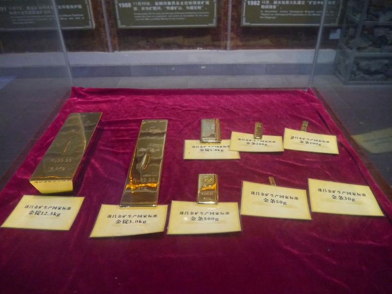 景区的山脚有一座金矿博物馆,博物馆里放着超级多矿石的原石。当然最引人注目的一定是黄金的原矿了,金的原矿石远远看去也没有什么差别,甚至可以说是其貌不扬,但自己一看就可以发现矿石表面有金闪闪的小颗粒,在灯光的照射下还可以一闪一闪的。看着这些金闪闪的黄金原矿,心里想着这矿石的含金量得多高啊!但听这里的解说说黄金的原矿石并不是看着表面金闪闪的就能表明里面的含金量高。