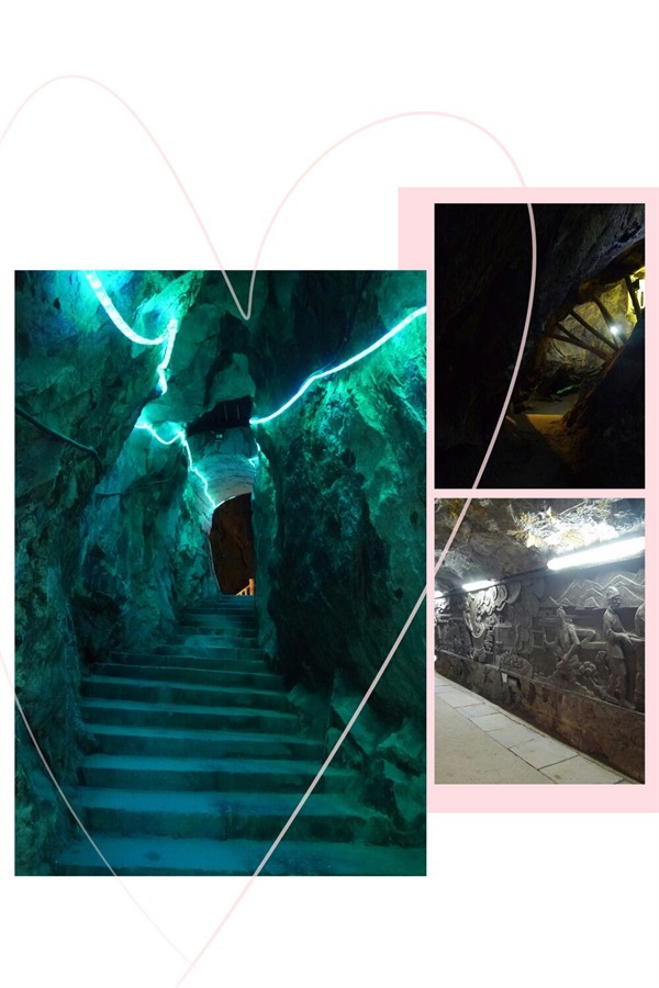 景区的小矿车有黄色和橙色两种,小火车行驶的铁轨锈迹斑斑,有一种特别的年代感。坐上小矿车,矿车就在山体里奔跑起来,说实话在山体里奔跑的小火车窗外除了只能看见微弱的灯光外,啥也看不见,真不知道古人是怎样忍受着这矿洞里的黑暗和孤寂的。